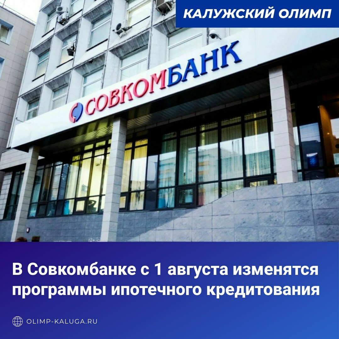 ⚡️В Совкомбанке с 1 августа изменятся программы ипотечного кредитования