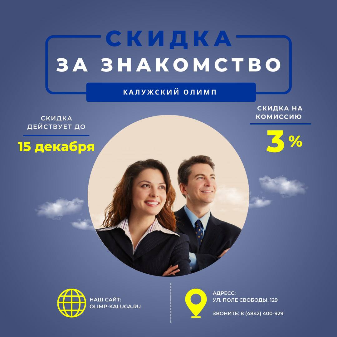 💢Калужский Олимп - дарит скидку на комиссию 3% всем новым клиентам.